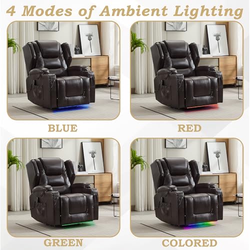 Convenient Design & 4 Led Mode: Our recliner chair is designed with convenient side pocket storage, two cup holders and ditional front pockets for easy access to frequently used items. There are 4 LED light modes to choose from