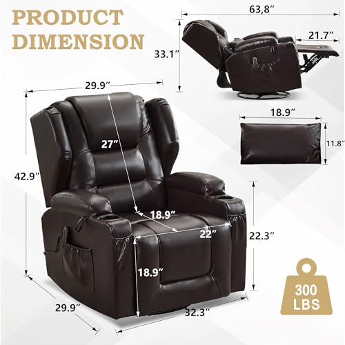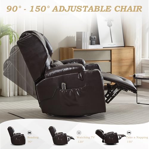 Multifunctional Rocking Chair: The swivel rocker recliner features a 360° swivel capability for effortless rotation, along with a 20° rocking function that provides soothing motion. You also can recline the chair up to 150° for optimal relaxation