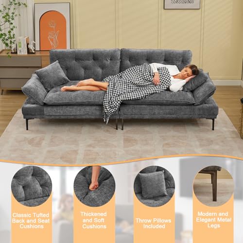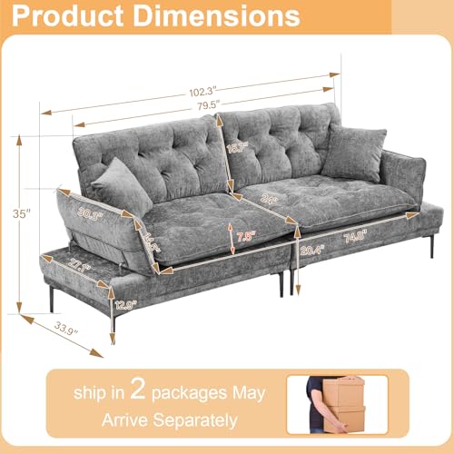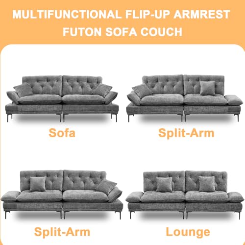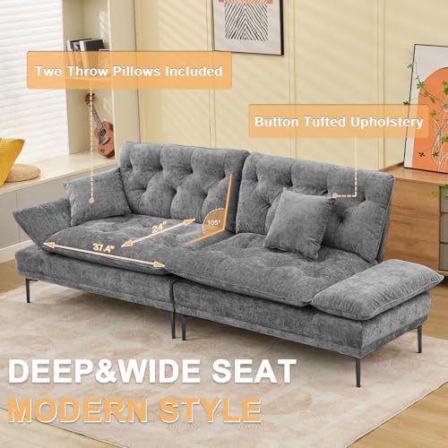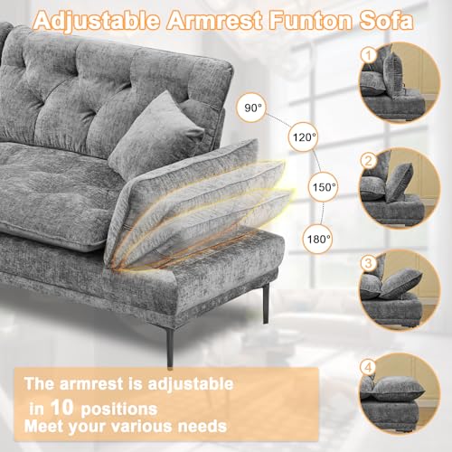 Modern Tufted Loveseat Sofa Couches with Adjustable Armrest, Comfy Chenille Fluffy Couch Wide and Deep Seat Lounge Sofa for Small Spaces Living Room, Bedroom, Dorm, Office (Gray)