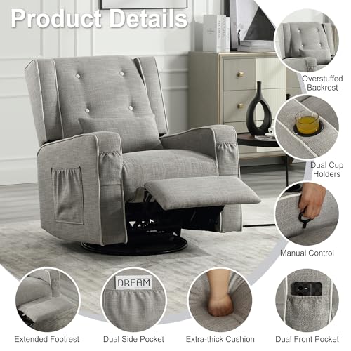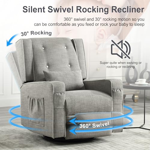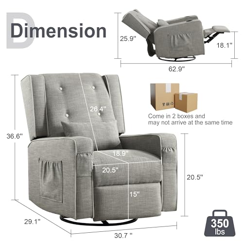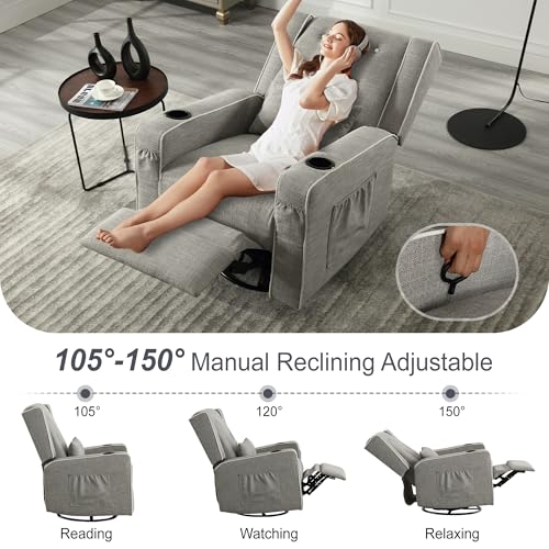 • Multifunctional Swivel Recliner: The wingback recliner features a 360° swivel capability for effortless rotation, along with a 30° rocking function and glidingprovides soothing motion. You also can recline the chair up to 150° for optimal relaxation
