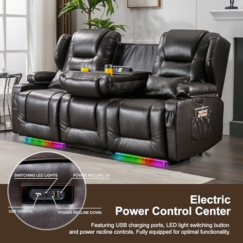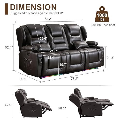 Comfy Theater Seating Recliner: This leather loveseat recliner boasts overstuffed padding for ultimate comfort. Featuring a classic wingback design with luxurious details, it's perfect for your living room, bedroom, home theater,motorhome or RV